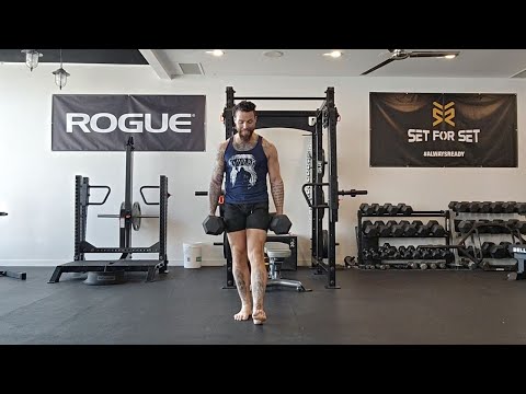 Start with: farmer's carries, 3 sets of 30 to 40 yards (or 30-second walks). Pick up the heaviest dumbbells or kettlebells you can hold with good posture. Walk tall. Shoulders down, core braced, chin level.