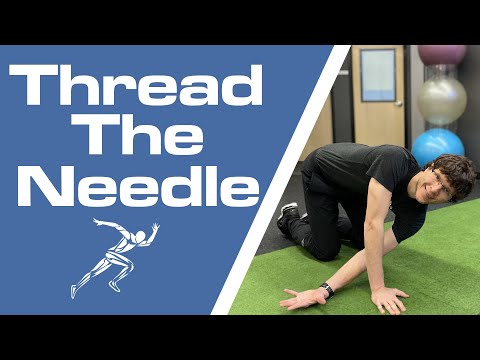 Start on all fours. Reach one arm up toward the ceiling, letting your eyes follow it, so your whole upper back rotates open. Then sweep that same arm down and through the gap between your supporting arm and your thigh, lowering your shoulder and ear to the floor. Your supporting arm should bend as the thread arm goes through.